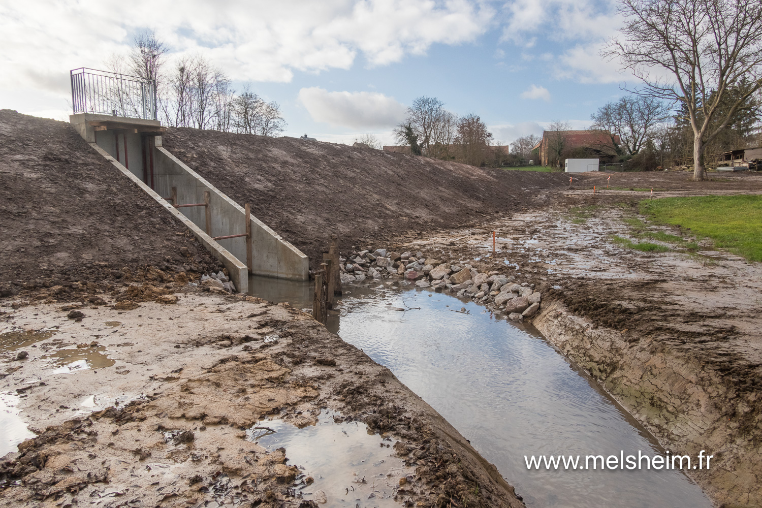En 2016, la compétence de prévention des innondations est transférée au SDEA. Le projet fait alors l’objet d’une maîtrise d’œuvre complète pour la réalisation de l’ouvrage de protection. Après de nombreux rebondissements réglementaires, administratifs et juridiques, les démarches d’acquisition des terrains et d’indemnisations des propriétaires et exploitants entre 2021 et 2022.