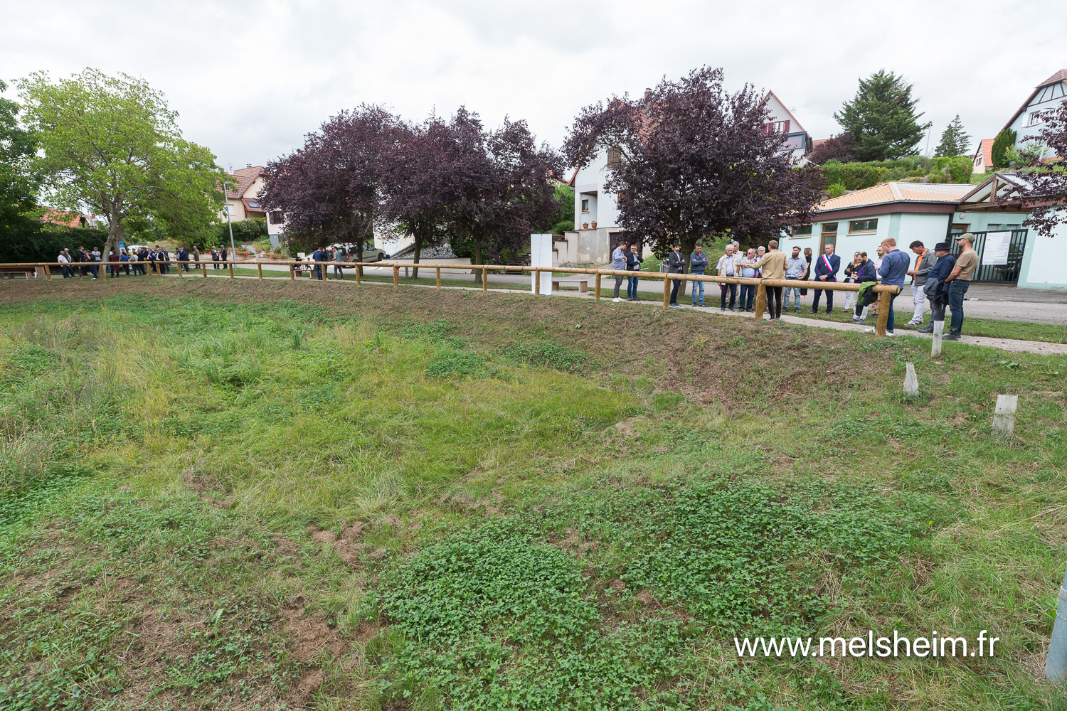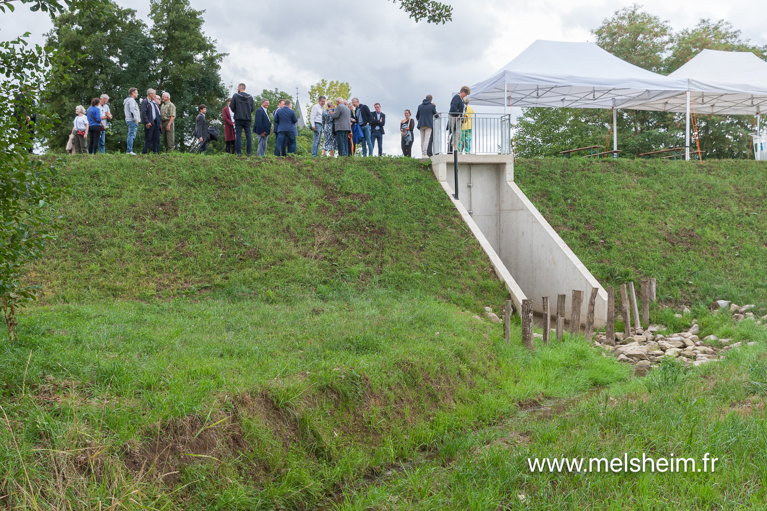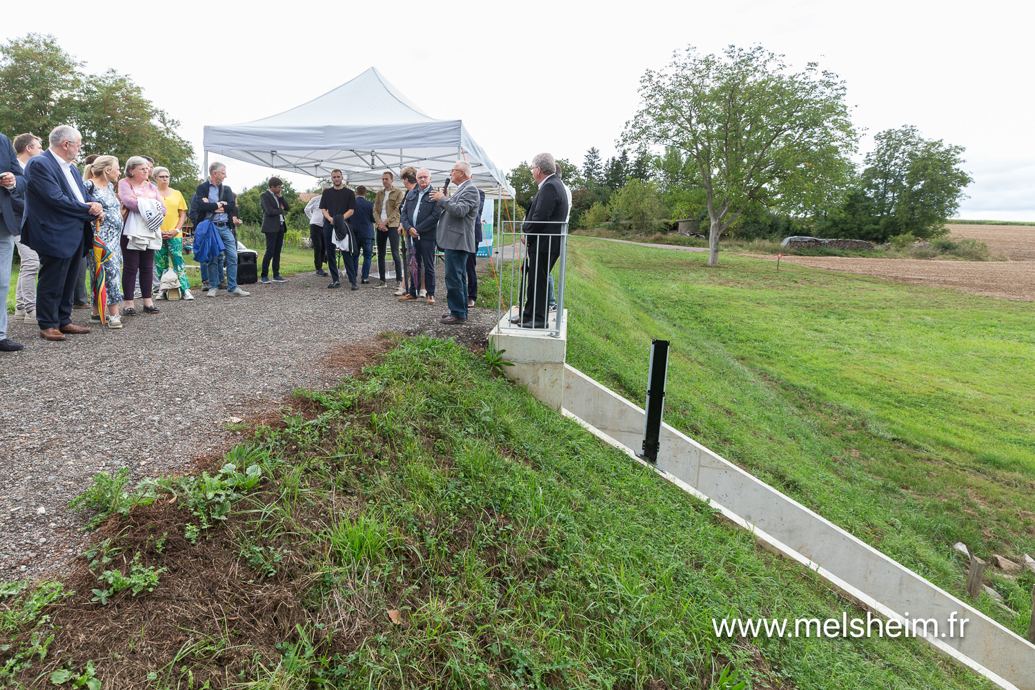 Inauguration du dispositif de contrôle des coulées d'eaux boueuses, digue et bassin de débordement à Melsheim.